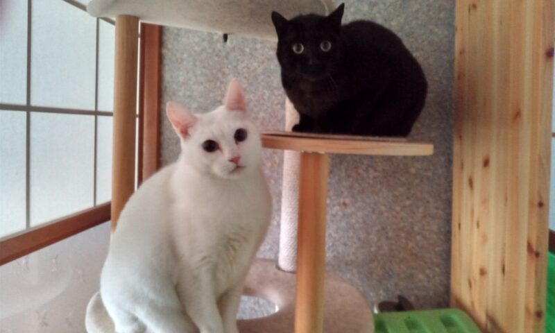 2頭共おとなしく、いつもキャットタワーにいます📷